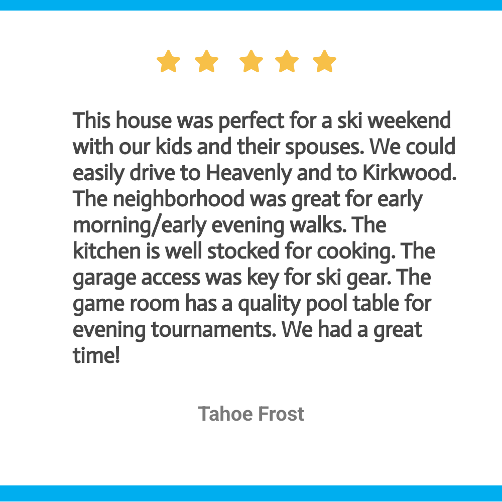 Vacation rental income in Lake Tahoe can vary based on location, home size, amenities, and seasonality. Our local team uses dynamic pricing and market data to maximize revenue for homeowners throughout the Tahoe region. Complete the form to see what your home could potentially earn.